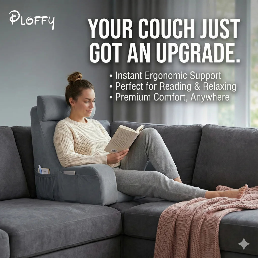 The Ploffy Seat goes beyond a basic reading pillow with several key upgrades: a groundbreaking 45-degree angled backrest that conforms to your body's natural curves, high-density foam core that won't sag or lose shape, detachable armrests and headrest for versatile positioning, a non-slip base, and convenient pockets on the armrests. It's engineered for real ergonomic support, not just temporary comfort.